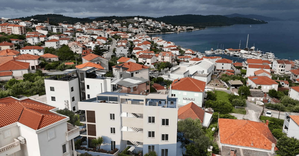 Modernes Erdgeschoss-Apartment mit Meerblick Im Erdgeschoss eines hochwertigen Neubaus befindet sich dieses einladende Apartment, das mit einem beeindruckenden Blick auf das kristallklare Meer überzeugt. Zwei großzügige Terrassen – davon eine überdacht – bieten viel Platz zum Entspannen im Freien, während ein zusätzlicher Garten von fast 200 m2 ein Gefühl von privater Ruheoase schafft. Komfortabler und Funktional Gestalteter Innenbereich Der Innenraum ist so konzipiert, dass ein harmonischer Übergang zwischen den Wohnbereichen entsteht. Die Wohnung umfasst zwei gemütliche Schlafzimmer, ein modernes Badezimmer sowie eine offene Küche mit Essbereich, die dem Raum zusätzliche Weite und Wärme verleihen. Alles ist darauf ausgerichtet, ganzjährig angenehmes Wohnen zu ermöglichen. Hervorragende Investitionsmöglichkeit Aufgrund der begehrten Lage, der außergewöhnlichen Außenflächen und der steigenden Nachfrage nach hochwertigen Erdgeschosswohnungen in Meeresnähe stellt diese Immobilie eine ausgezeichnete Investitionsgelegenheit dar. Sie eignet sich sowohl für den Eigengebrauch als auch für eine rentable Vermietung. Für weitere Informationen oder eine Besichtigung stehen wir Ihnen gerne zur Verfügung. Bei erfolgreicher Vermittlung fällt eine Maklerprovision an. Ansprechpartner für dieses Objekt: Matej, +385 91 288 0083