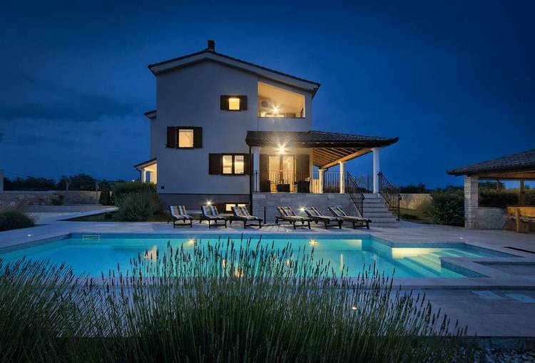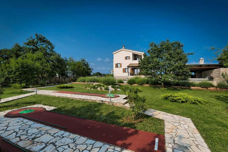 Zum Verkauf steht eine luxuriöse freistehende Villa in der ruhigen istrischen Ortschaft Štokovci, umgeben von Natur und Privatsphäre, auf einem großzügigen Grundstück von 2.000 m2, umgeben von einer Steinmauer. Die Immobilie ist neueren Baujahres und bietet einen hohen Wohnstandard, ausgezeichnete Funktionalität sowie zahlreiche zusätzliche Ausstattungen. Die gesamte Wohnfläche des Hauses beträgt 290 m2 und ist auf Keller, Erdgeschoss und Obergeschoss verteilt. Im Keller befindet sich ein Bereich für Geselligkeit und Freizeit, ausgestattet mit Einrichtungen wie einem Fitnessbereich und einer Unterhaltungszone, was die Aufenthaltsqualität und Funktionalität der Immobilie zusätzlich erhöht. Das Erdgeschoss besteht aus einem großzügigen Wohnzimmer mit angeschlossenem Essbereich, einer voll ausgestatteten Küche, einem Schlafzimmer mit eigenem Bad, einem zusätzlichen Badezimmer sowie einem Zugang zu einer großen Terrasse und dem angelegten Garten. Im Obergeschoss befinden sich vier geräumige Schlafzimmer, jeweils mit eigenem Badezimmer. Ein Schlafzimmer hat Zugang zu einem Balkon mit teilweisem Meerblick. Der Garten ist außergewöhnlich gepflegt und bietet zahlreiche Annehmlichkeiten: einen großen Pool mit einer Fläche von 36 m2, einen Whirlpool für sechs Personen, eine Minigolfanlage mit sechs Bahnen, einen Sportplatz (Fußball, Basketball, Volleyball), einen Kinderspielplatz sowie ausreichend Platz zum Parken mehrerer Fahrzeuge. Die Villa ist vollständig klimatisiert, mit hochwertigen Materialien und moderner Ausstattung versehen und für die ganzjährige Nutzung geeignet. Die Immobilie stellt eine ausgezeichnete Gelegenheit sowohl für luxuriöses privates Wohnen als auch als Investition mit hohem Potenzial für touristische Vermietung dar, dank der großen Kapazität, der hochwertigen Ausstattung und der attraktiven Lage in Istrien. Für alle weiteren Informationen und Besichtigungen der Immobilie stehen wir Ihnen gerne zur Verfügung. Im Falle einer Vermittlung durch unsere Agentur besteht die Verpflichtung zur Zahlung einer Maklerprovision. Kontakt für diese Immobilie: Vito, +385 91 622 7421
