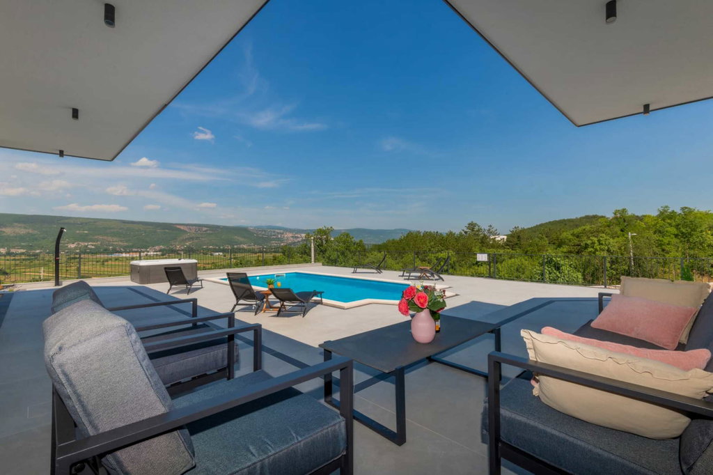 A modern, beautifully furnished house of 150 m2 is for sale, situated on a spacious 1040 m2 plot in the peaceful and idyllic surroundings of the Dalmatian Hinterland. The property offers complete privacy, comfort, and a spectacular panoramic view of the town of Imotski, as well as the Blue and Red Lake. The lakes are recognized as a UNESCO Global Geopark, and the entire area is rich in exceptional cultural heritage and well-preserved historical landmarks. Main features: Living area: 150 m2 Gross area: 180 m2 Plot size: 1040 m2 Open-space living room with large glass walls Modern, fully equipped kitchen and dining area 3 spacious bedrooms 3 bathrooms 1 guest toilet Large terrace with landscape views Heated swimming pool (32 m2) Garden Sauna Outdoor jacuzzi Storage room Children’s playground Private parking The terrace also includes a covered outdoor dining area with a traditional wood-fired grill. All rooms are equipped with air conditioning, the doors are security-reinforced, and the house features underfloor heating and a heat pump system. The property is oriented toward all four cardinal directions and holds an A-class energy certificate. Distance to the beautiful beaches of Makarska is 19 km, and to the city of Split 70 km. This property is ideal for vacationing or year-round tourism. For any additional questions or to arrange a viewing, feel free to contact us. In the event of an agency-mediated transaction, an agency commission fee applies. Contact for this property: Jasmina, +385 95 388 4813