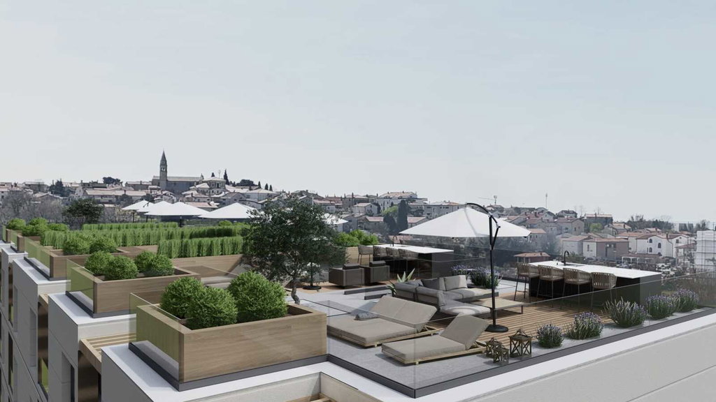 In a quiet part of Tar, not far from the center and all amenities, a modern building is located, currently under construction. The apartment is on the ground floor with a garden and has 69 m2. The apartment consists of an entrance hall, a spacious open-space kitchen with dining area and living room, which leads to a terrace – perfect for morning coffee or evening relaxation. It has two bedrooms, one of which has access to a balcony, and a modernly equipped bathroom. The apartment has its own rooftop terrace with preparations for a jacuzzi, sauna, summer kitchen, and 2 parking spaces included in the price. When it comes to construction and equipment, this apartment meets the highest standards. Underfloor heating is installed throughout the apartment, providing comfortable warmth throughout the year, and for additional comfort, there is also an air conditioner. The floors are covered with high-quality Italian ceramics, while the bathroom shines thanks to the sanitary ware from the prestigious brand Villeroy & Boch. This property is more than just an apartment. It is an opportunity to create a home, a sanctuary, or a smart investment in one of the most desirable locations in Istria. Whether you're looking for a quality living space or a safe investment for rental, the apartment offers everything you need. Final works will be completed in summer 2026. In the case of mediation by our agency, there is an obligation to pay an agency commission. For all additional questions and property viewings, we are at your disposal. For this property, contact: Vito, +385 91 622 7421