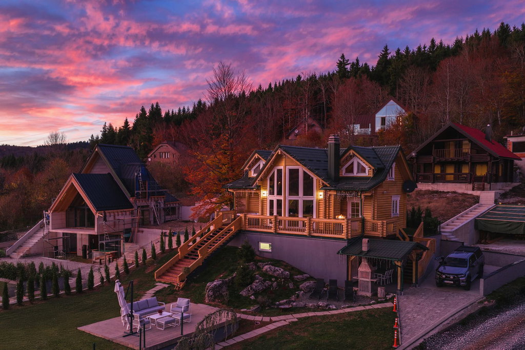 Exclusive Finnish Log House in Mrkopalj with a View of the Čelimbaša Ski Resort In the green heart of Gorski Kotar, in the peaceful and authentic village of Mrkopalj, this luxurious Finnish log house stands out for its exceptional construction quality and its position on a sunny slope with an open, panoramic view of the Čelimbaša ski resort. This property perfectly combines a natural mountain setting, a sense of privacy, and modern comfort, making it an ideal choice for those seeking a tranquil retreat or a premium holiday home throughout the year. Thoughtful Layout and Superior Construction The house is situated on a beautifully landscaped plot of 760 m2, while the net living area of approximately 150 m2 is spread over three functionally connected levels. The basement features a spacious garage with storage space, ideal for sports equipment and seasonal needs. The ground floor and attic form a warm and bright living area with four comfortable bedrooms and three modern bathrooms, designed to maximize natural light and open views of the surrounding mountains. A particular highlight is the living room with large glass walls that blur the boundary between the interior and nature and lead out to a spacious terrace. The house is built from laminated logs of slow-growing Siberian pine, with an additional 20 cm of insulation, ensuring excellent energy efficiency, a pleasant indoor climate, and long-term durability. Terrace, Garden, and Investment Potential The outdoor area has been carefully designed as a private oasis for relaxation and socializing. The terrace with a built-in jacuzzi offers the perfect place to enjoy silence, fresh mountain air, and views of nature, while the landscaped garden continues with a sunbathing area, an outdoor dining space with a barbecue, covered parking, and an additional garden house. Thanks to its exceptional location, the growing popularity of Gorski Kotar, and the possibility of year-round rental, this property also represents a very attractive investment. It is ideal both for private use and for those seeking a secure and long-term profitable luxury property in nature. If a lower price for this property is advertised on another website, the same price applies with us. For any additional information and to arrange a viewing, we are at your disposal. In the case of brokerage services provided by our agency, there is an obligation to pay an agency commission. Contact for this property: Ivan, +385 91 288 0082