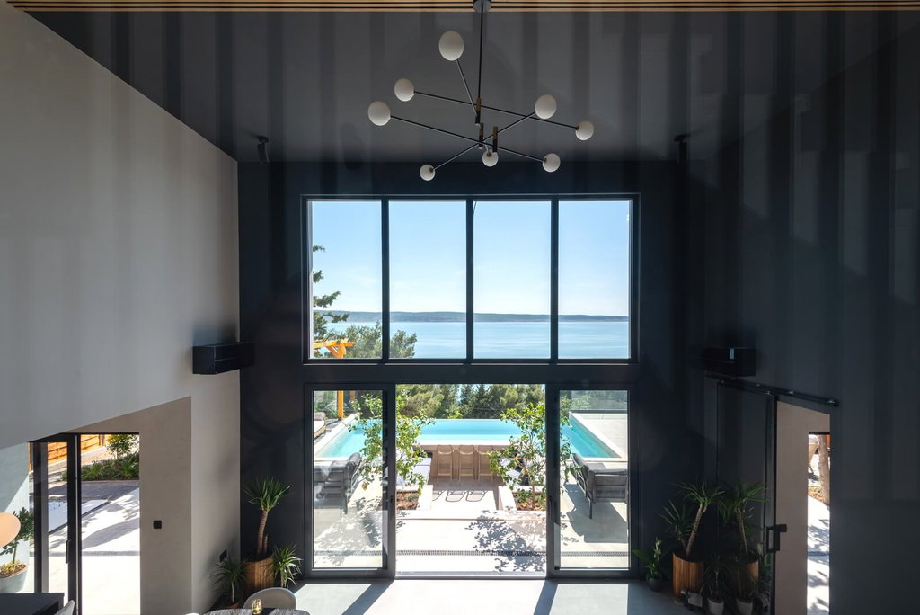 Luxury Seafront Villa – A Blend of Privacy, Design and Mediterranean Atmosphere Set in an exceptionally attractive location in the northwest of Zadar County, just a few steps from the coastline, this exclusive villa offers complete privacy, tranquility, and top-level living comfort. Surrounded by nature, the sea, and fresh air, in an environment where Mediterranean and mountain influences intertwine, the property enjoys a unique microclimate and the feeling of a true private oasis, while being only about a 40-minute drive from the city of Zadar. Built in 2023 on a 515 m2 plot, the villa extends over three floors and offers 270 m2 of carefully designed living space. Every detail has been planned to achieve the perfect balance between aesthetics, functionality, and luxury, creating a home where elegance naturally meets modern living. Designer interior and comfort across three floors The interior reflects contemporary minimalism and openness. The ground floor features an open-concept layout combining a fully equipped high-end kitchen, dining area, and living room, seamlessly connected to the outdoor space through large glass walls. This integration of interior and exterior enhances the sense of space and natural light. A storage room, bathroom, and private wellness area with a sauna and jacuzzi ensure year-round relaxation and maximum comfort. The first floor includes two comfortable bedrooms, each with its own bathroom and access to a balcony with open sea views. The top floor offers four additional luxury bedrooms with en-suite bathrooms. Thanks to panoramic glass walls, the sea view becomes part of everyday life, even from the comfort of your bed. This layout makes the villa ideal for larger families as well as for high-end tourist rentals. Exterior as a private resort and investment opportunity The outdoor area is designed as an intimate private resort for relaxation and socializing. At the center is a swimming pool with a sun deck, surrounded by Mediterranean plants and a beautifully landscaped garden. A recessed lounge area by the water creates the perfect setting for evening gatherings and sunsets. Next to the pool, an elegant pergola with canopies and loungers provides shade, while citrus trees and aromatic herbs emphasize the authentic Dalmatian character. Private parking spaces are secured, and the sea is only 100 meters away, adding further value to the property. Thanks to its prime location, contemporary architecture, and already proven results in the luxury rental market, this villa represents an outstanding opportunity for private enjoyment as well as a safe, long-term investment. If a lower price for this property is published on another website, the same price applies with us. For any additional information or property viewings, please feel free to contact us. In the event of a transaction, an agency commission applies. Contact person: Ivan, +385 91 288 0082