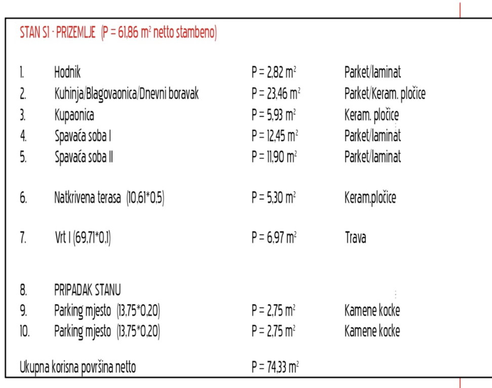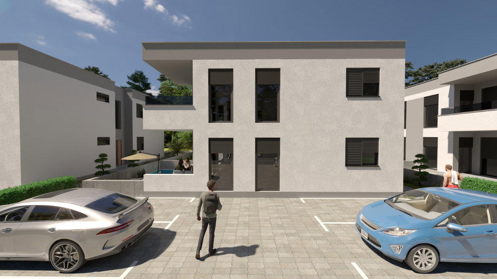 For sale is a modern apartment in Kožino that combines top-quality construction, comfort, and proximity to the sea. The layout of the 74.33 m2 apartment consists of an entrance hall, kitchen, dining area, bright living room with access to a spacious terrace, two bedrooms, and a private garden of 70 m2. The apartment includes two parking spaces, and there is the option to build a pool with an additional payment. The beautiful Adriatic Sea is only 1,500 meters away, making this property a perfect choice for those who want to enjoy a peaceful seaside environment. The apartment is equipped with underfloor heating, electric shutters, security doors, alarm system, and video intercom. Air conditioning units will also be installed for maximum comfort throughout the year. Expected completion of construction is the end of 2026. The price of the apartment for private buyers is €3,490/m2 including VAT, with the possibility of purchase through a housing loan. At the signing of the contract, a 12% deposit is required, while the remainder is paid after loan approval. For buyers paying in cash, the price is €2,990/m2, with payment carried out in three stages, which makes this offer extremely attractive for further investment. This property is a perfect combination of modern living and investment opportunity. If a lower price for this property is published on another website, the same price applies with us. In the case of mediation by our agency, there is an obligation to pay an agency commission. For any additional questions and property viewings, we are at your disposal. For this property, the contact is: Vito, +385 91 622 7421