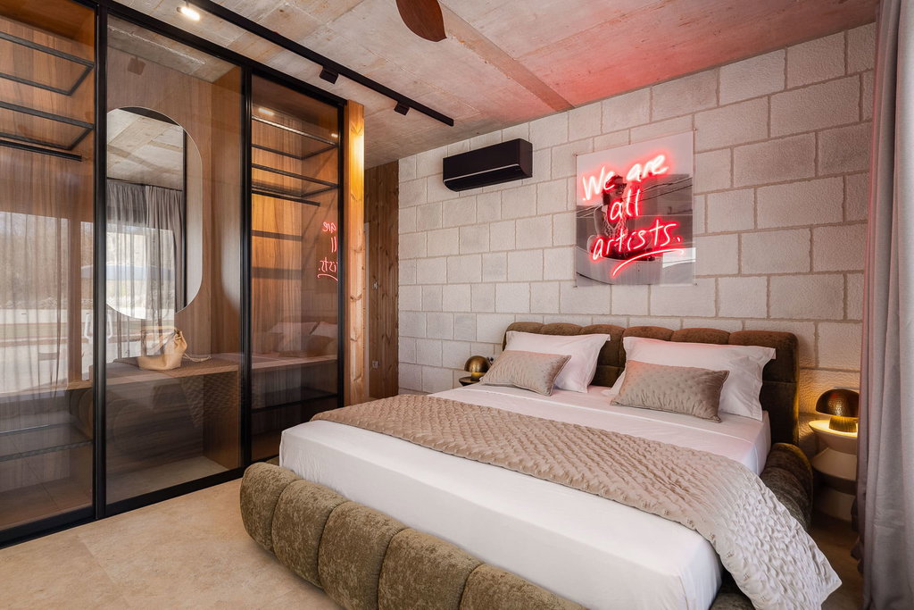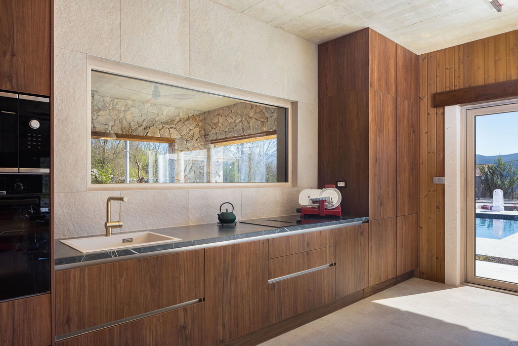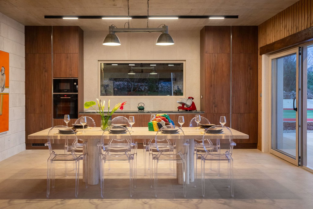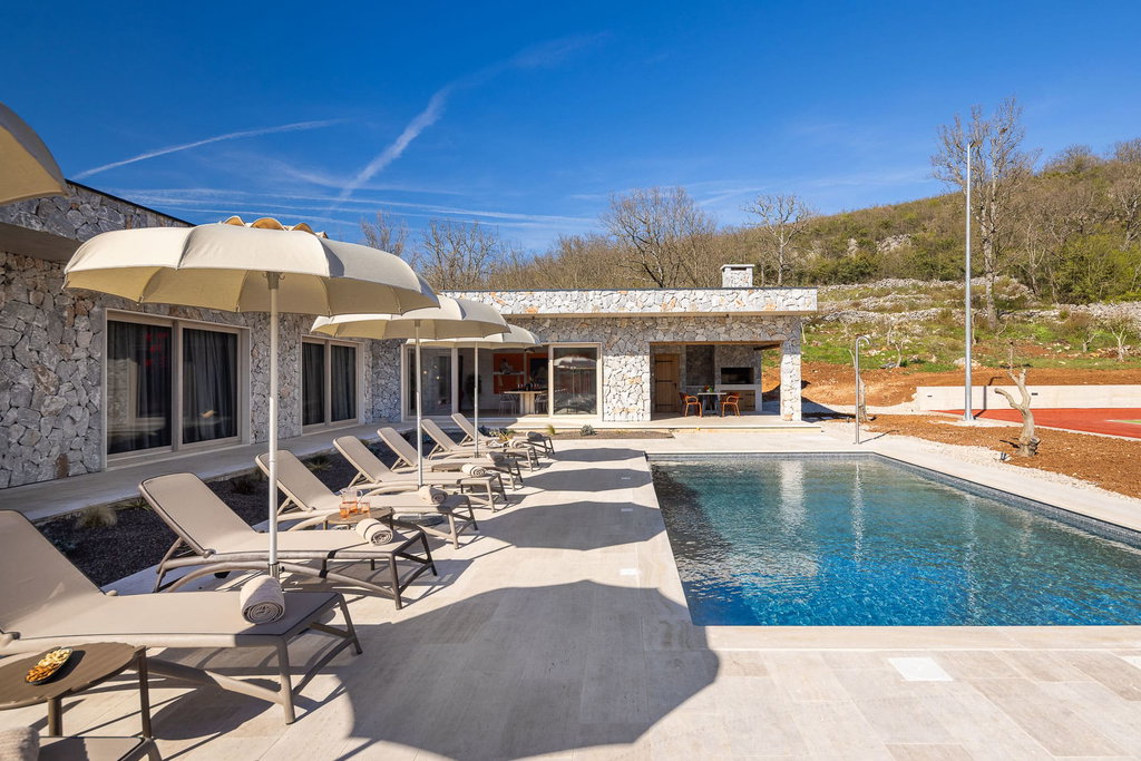 Moderna vila s bazenom i teniskim terenom u blizini Splita Na svega 20 kilometara od Splita, u srcu mirne i slikovite Dalmatinske zagore, smjestila se novoizgrađena moderna vila koja spaja suvremeni luksuz i šarm tradicionalnog dalmatinskog podneblja. Na privatnoj parceli od gotovo 3000 m2, ova nekretnina pruža potpuni mir i privatnost, a istovremeno omogućuje brzi pristup obali i urbanim sadržajima Splita. Okružena prirodnim krajolikom i maslinama starim više od 30 godina, vila je savršeno mjesto za bijeg od svakodnevice. Elegantno oblikovan interijer i luksuzna udobnost Stambena površina od 240 m2 proteže se kroz prozračne i pomno uređene prostore u kojima prevladava spoj modernih linija i klasičnih detalja. Dnevni boravak otvorenog tipa povezan je s kuhinjom i blagovaonicom, stvarajući savršenu cjelinu za uživanje i druženje. Prostor oplemenjuju veliki stol od travertina, dizajnerske fotelje te pažljivo odabrani dekorativni elementi koji se skladno nadovezuju na kamene i drvene detalje. Vila raspolaže s četiri spavaće sobe, svaka s vlastitom kupaonicom i izravnim izlazom na prostranu terasu obloženu travertinom. Prostrane terase, bazen i privatni teniski teren Na terasi površine 250 m2 dominira grijani bazen od 45 m2 sa sunčalištem, a u neposrednoj blizini nalazi se ognjište od kamena s velikim stolom te vanjska kuhinja s roštiljem i blagovaonicom na otvorenom. Cjelokupni prostor dizajniran je kako bi pružio savršene uvjete za opuštanje, druženje i boravak na svježem zraku. Poseban dodatak ove nekretnine je privatni teniski teren s umjetnom travom i rasvjetom, što boravku daje poseban sportsko-rekreativni ugođaj. Uz sve to, osigurano je parkiralište za više vozila unutar ograđenog posjeda. Ako je za ovu nekretninu na nekoj drugoj web stranici objavljena niža cijena ista vrijedi i kod nas. U slučaju posla posredovanja naše agencije postoji obveza plaćanja agencijske provizije. Za sva dodatna pitanja i razgled nekretnine stojimo Vam na raspolaganju Za ovu nekretninu je kontakt: Ivan, +385 91 288 0082