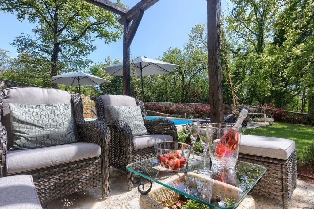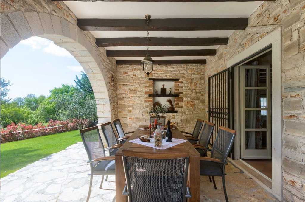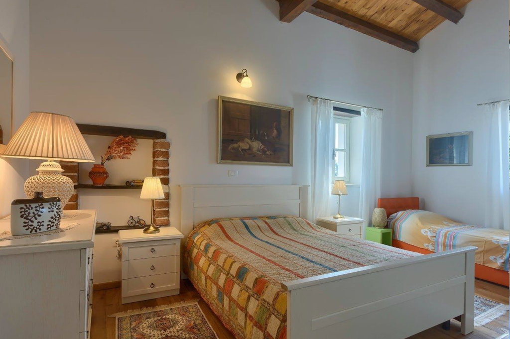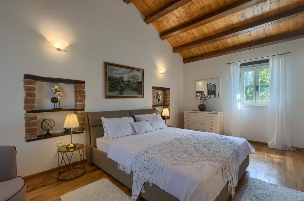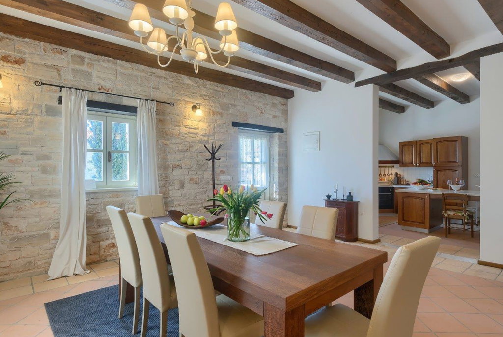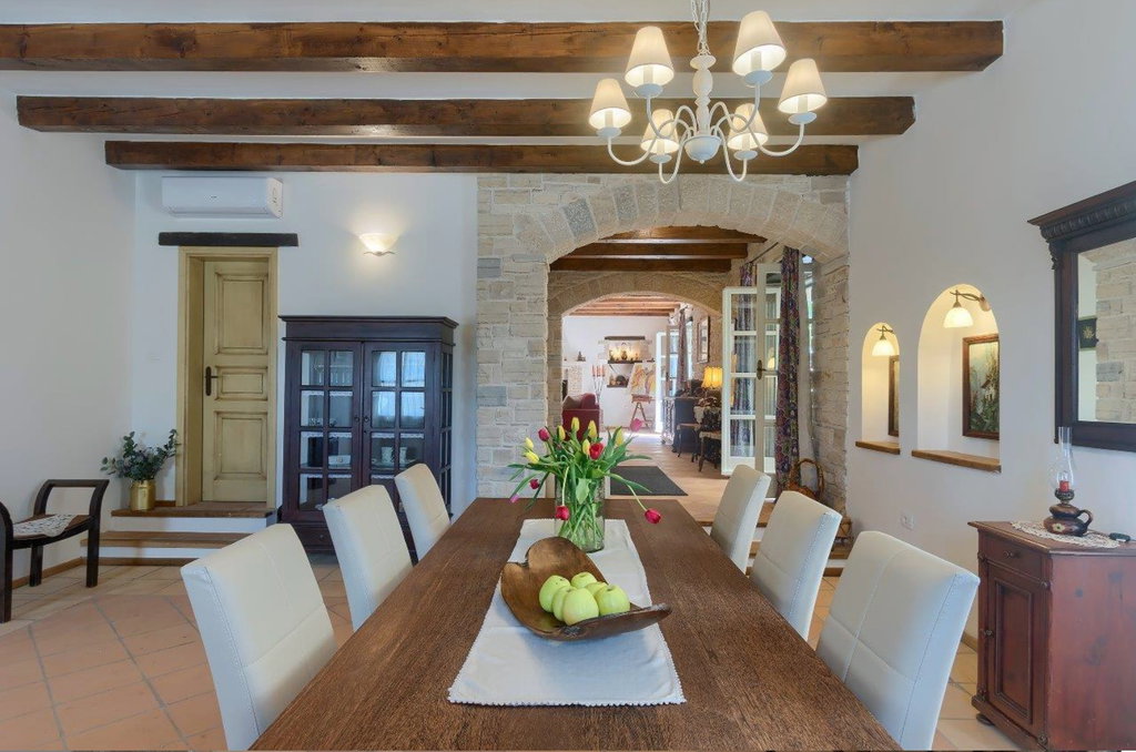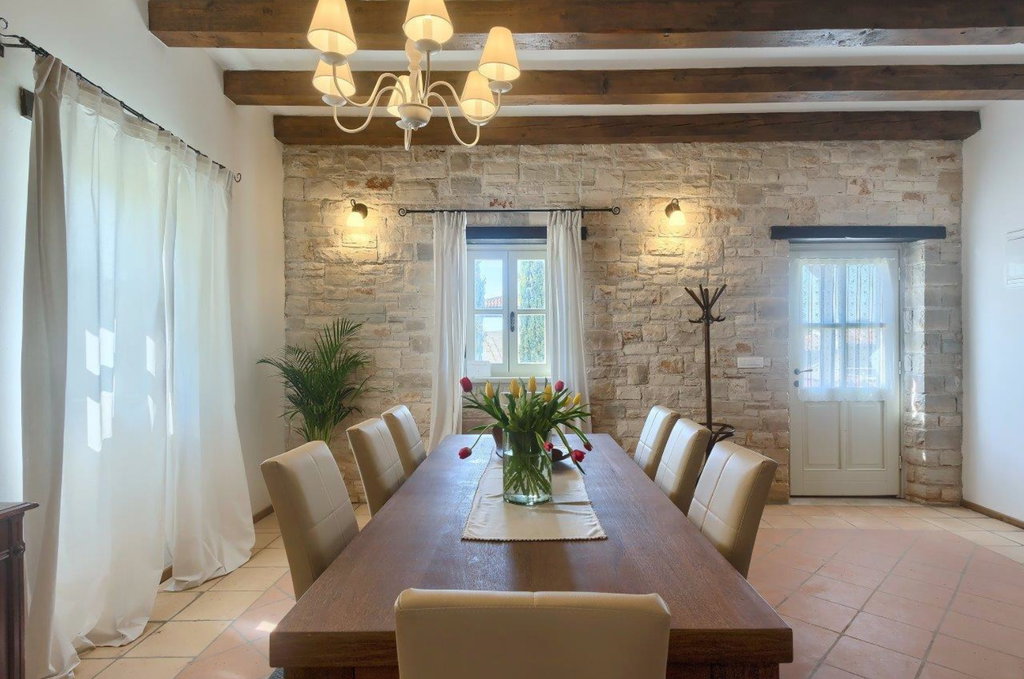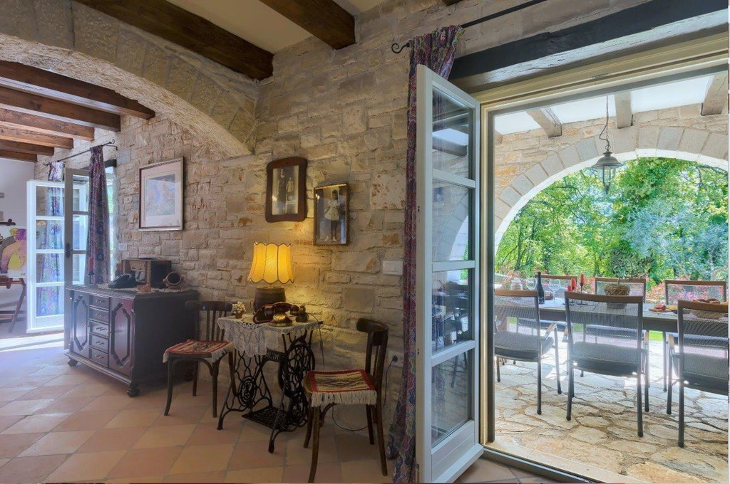 Vrhunska kamena vila u okolici Tinjana – autentičan istarski šarm, suvremeni komfor i izvrsna investicija U mirnom mjestu nedaleko od Tinjana smjestila se ova profinjena kamena vila s bazenom, primjer pažljivo obnovljene istarske arhitekture koja spaja tradiciju i moderni luksuz. Cjelokupna renovacija provedena 2021. godine donijela je svjež, suvremen karakter, dok su istovremeno očuvani autentični elementi gradnje poput suhozida, drvenih greda i metalnih škura. Posebno vrijedi istaknuti dodano podno grijanje u prizemlju, iznimno vrijedno za kamenja zdanja jer omogućuje zdraviju mikroklimu i ugodan boravak tijekom cijele godine. Vila je kategorizirana s 4*, opremljena za smještaj osam osoba, ali zahvaljujući visokim standardima može se bez poteškoća kategorizirati i s 5*. ________________________________________ Uređeni interijeri u dvije etaže – spoj topline, funkcionalnosti i elegancije Prostor prizemlja organiziran je tako da odmah po ulasku dočekuju kuhinja izrađena od punog drva, praktična smočnica i praonica. Blagovaonica je blago odvojena dvjema stepenicama, a hodnik vodi prema gostinjskoj kupaonici te velikom dnevnom boravku u kojem se nalaze dva kauča na razvlačenje. Iz dnevnog dijela izlazi se na natkrivenu terasu idealnu za objedovanje „al fresco“. Drvene i terakota stepenice vode na kat gdje se nalazi izlaz na balkon s prostorom za sjedenje i pogledom na netaknuto zelenilo – budući da se susjedna parcela ne nalazi u građevinskoj zoni, mir i privatnost su zajamčeni. Kat sadrži tri profinjeno uređene spavaće sobe, svaku s vlastitom, potpuno opremljenom kupaonicom. Glavna spavaća soba raspolaže bračnim krevetom širine 180 cm, dok preostale dvije sobe imaju kombinaciju bračnih i dodatnih kreveta. Sve kupaonice opremljene su ležećom kadom, tušem, bideom i dvostrukim umivaonicima, pružajući vrhunsku razinu komfora. ________________________________________ Prostrano dvorište, bazen i vrhunska oprema – idealno okruženje za odmor ili investiciju Uređeni eksterijer upotpunjuje bazen površine 37 m2, za koji postoji priprema za ugradnju sustava grijanja, što ga čini pogodnim za korištenje tijekom većeg dijela godine. U dvorištu se nalaze i natkriveni kamin, vanjska kupaonica s tušem, natkriveni parking za dva automobila s utičnicom za punjenje električnih bicikala ili automobila te dodatni nenatkriveni prostor za još četiri vozila. Vila posjeduje kotlovnicu s dizalicom topline te Bosch sustavom centralnog grijanja i tople vode. Sve spavaće sobe klimatizirane su s mogućnošću grijanja i hlađenja, dok prizemlje dodatno grije podno grijanje i tradicionalno ognjište na drva. Prodaje se u potpunosti namještena, s drvenom unutarnjom stolarijom i dvoslojnim staklima, što dodatno doprinosi toplini i kvaliteti prostora. Zahvaljujući svom autentičnom karakteru i dojmljivom ambijentu, vila je već godinama omiljen izbor turista zaljubljenih u Istru te je često tražena za foto snimanja i intimna vjenčanja. Ova nekretnina predstavlja savršenu priliku za sve koji žele svoj komadić Istre, bilo za osobni odmor, bilo kao investiciju uz mogućnost cjelogodišnjeg iznajmljivanja. Ako je za ovu nekretninu na nekoj drugoj web stranici objavljena niža cijena ista vrijedi i kod nas. Za sva dodatna pitanja i razgled nekretnine stojimo Vam na raspolaganju. U slučaju posla posredovanja naše agencije postoji obveza plaćanja agencijske provizije. Za ovu nekretninu je kontakt: Ivan, +385 91 288 0082