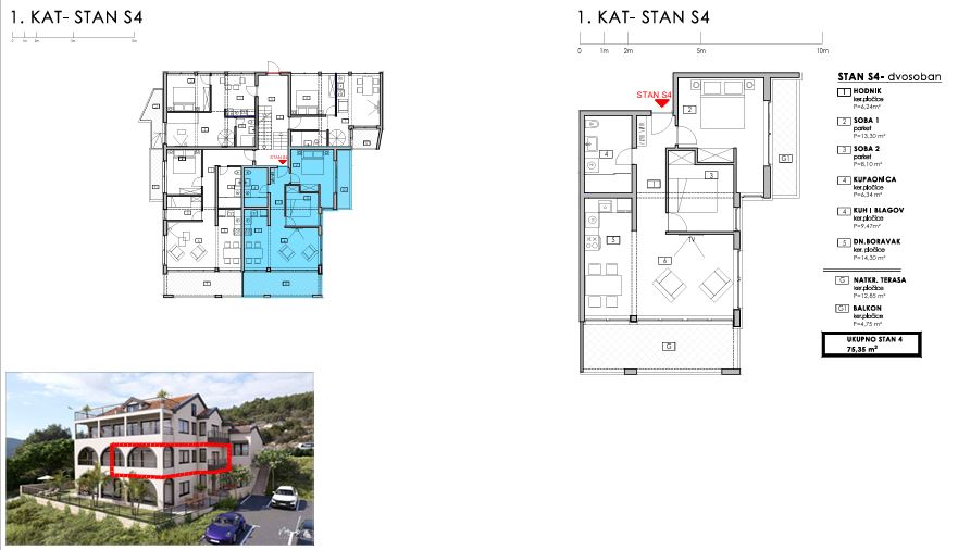 Lijepi, prostrani apartman bruto površine 75 m2 smješten je u Marini, nedaleko od Trogira, samo nekoliko minuta hoda od mora. Ova novogradnja izrađena je od biranih, kvalitetnih materijala te nudi moderan dizajn i visoku razinu udobnosti. Apartman se nalazi na blagoj uzvisini, što mu omogućuje prekrasan pogled na more i obilje prirodnog svjetla kroz velike prozore i prostrani balkon. Sastoji se od dvije udobne spavaće sobe, prostranog dnevnog boravka idealnog za druženje i opuštanje, te elegantne kupaonice s LED ogledalom i modernim walk-in tušem. Kuhinja je rađena po mjeri i opremljena profesionalnim aparatima koji će zadovoljiti svakog ljubitelja kuhanja. Natkrivena terasa pruža predivan pogled na more i stvara savršeno mjesto za uživanje u jutarnjoj kavi ili večernjim zalascima sunca. Ovaj apartman idealan je izbor za ugodan obiteljski život, odmor ili kao investicija za turistički najam u jednom od najljepših dijelova Dalmacije. Ako je za ovu nekretninu na nekoj drugoj web stranici objavljena niža cijena ista vrijedi i kod nas. Za sva dodatna pitanja i razgled nekretnine stojimo Vam na raspolaganju. U slučaju posla posredovanja naše agencije postoji obveza plaćanja agencijske provizije. Za ovu nekretninu je kontakt: Matej, +385 91 288 0083