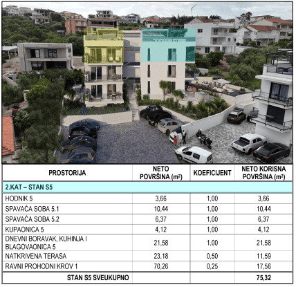 Trogir, Slatine, stan S6 62m2 u novogradnji s pogledom na more na prodaju