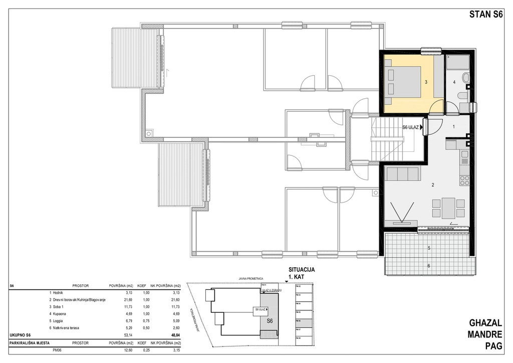Pag, Mandre, luksuzna novogradnja blizu mora, stan S1, neto 87,60 m2