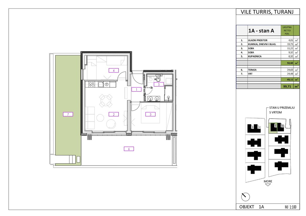Prodaje se moderan stan u Turnju. Sastoji se od dnevnog boravka s kuhinjom i blagovaonicom, dvije prostrane spavaće sobe, kupaonice, terase, vrta i hodnika, a stanu također pripada i vanjsko parkirno mjesto. Stan se nalazi u sklopu novoizgrađenog urbanog naselja smještenog svega 50ak metara od plaže. Svi materijali i oprema prve su klase poput troslojne aluminijske stolarije(CORTIZO COR70) za mediteran, sanitarije i keramika, kao i ventilirajuća keramička fasada, te smart home sustav. Za sva dodatna pitanja i razgled nekretnine stojimo Vam na raspolaganju. U slučaju posla posredovanja naše agencije postoji obveza plaćanja agencijske provizije. Za ovu nekretninu je kontakt: Filip, +385 91 288 0089